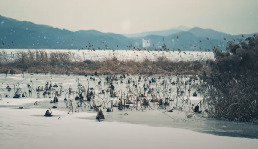 겨울이면 얼음이 얼어 빛나는 에메랄드빛 호수와