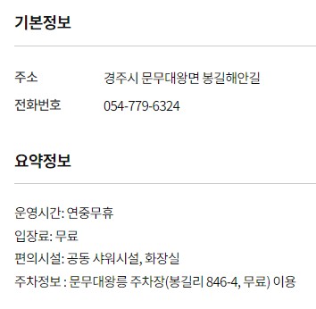 봉길대왕암해변은 백사장 길이 500m, 폭 40m로 경주시에서 동쪽으로 32km 떨어진 대종천 하구에 자리해 있다. 개장 시 평균 수온은 섭씨 22도가량 된다. 앞에는 신라 문무대왕의 해중릉인 대왕암이 있으며, 멀지 않은 곳에 감은사, 이견대가 있어 함께 둘러보기 좋다. 여름 피서와 경주 문화유산 관광을 함께하는 코스로 추천한다.(출처 경주시)