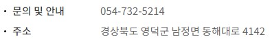 경북 영덕군 울진군 해수욕장 해변 중 대표적인 곳을 알려드립니다. 동해안의 맑은 바다와 수영 서핑을 즐길 수 있으며 스노툴링이나 낚시등을 즐길 수 있는 최적의 해변들이 이곳에 있습니다. 그 해변들의 정보 잘 파악하시고 언제나 즐거움이 가득한 동해 영덕군과 울진군의 해변 만나보십시오. 여름뿐 아니라 겨울바다와 해돋이 명소로도 최적의 장소입니다.