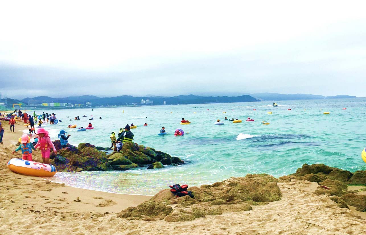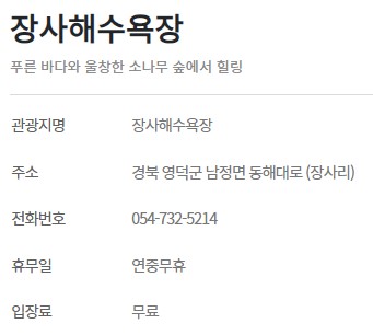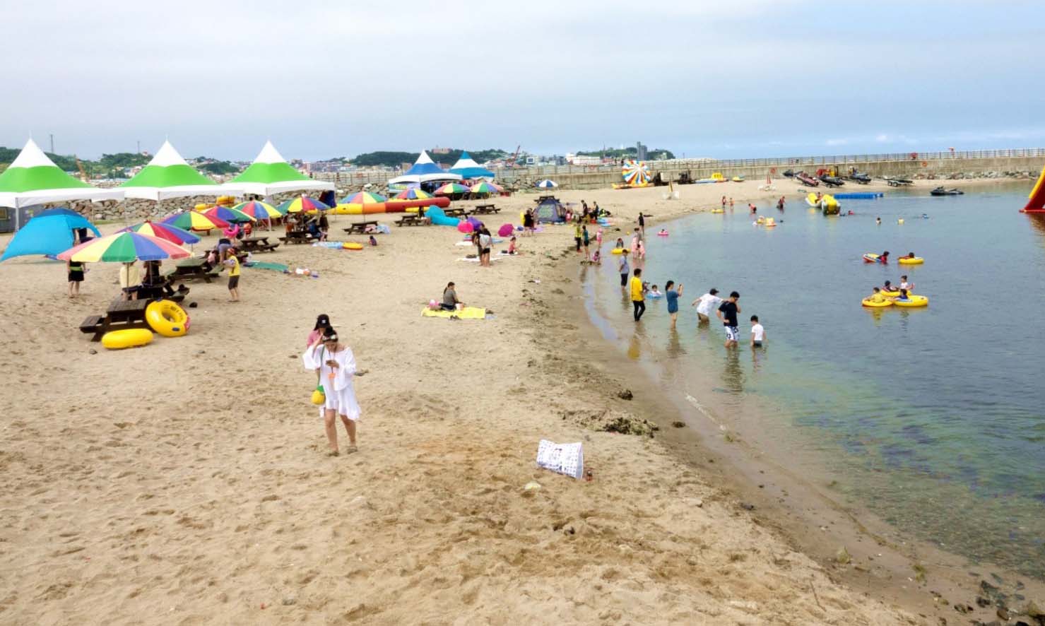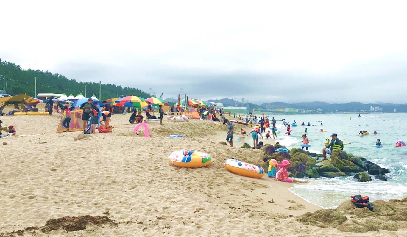모래의 알이 굵고 몸에 붙지 않아 맨발로 걷거나 찜질을 하면 심장과 순환기 계통 질환에 아주 좋고, 최고의 수질을 자랑하는 부경온천이 5분 거리에 있으며, 일출이 전국에서 최고인 해수욕장입니다. 6.25 사변당시 장사상륙작전지로 역사의 발자취가 완연하여 학생들의 학습장으로 많이 알려져 있습니다.