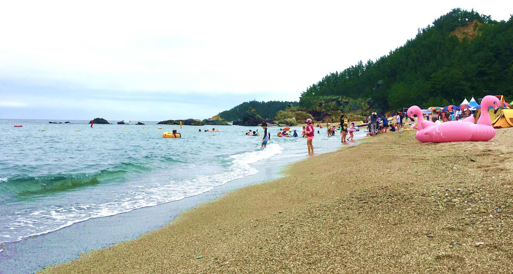 바닷가에 인접한 송림과 잘 어우러진 아름다운 해수욕장입니다. 주차장이 마련되어 있고 차에서 내리면 바로 앞에 백사장과 바위섬이 해안가 옆 송림이 있어 텐트를 치면 뜨거운 햇빛도 피할 수 있고 넓은 동해바다를 조망할 수 있습니다.