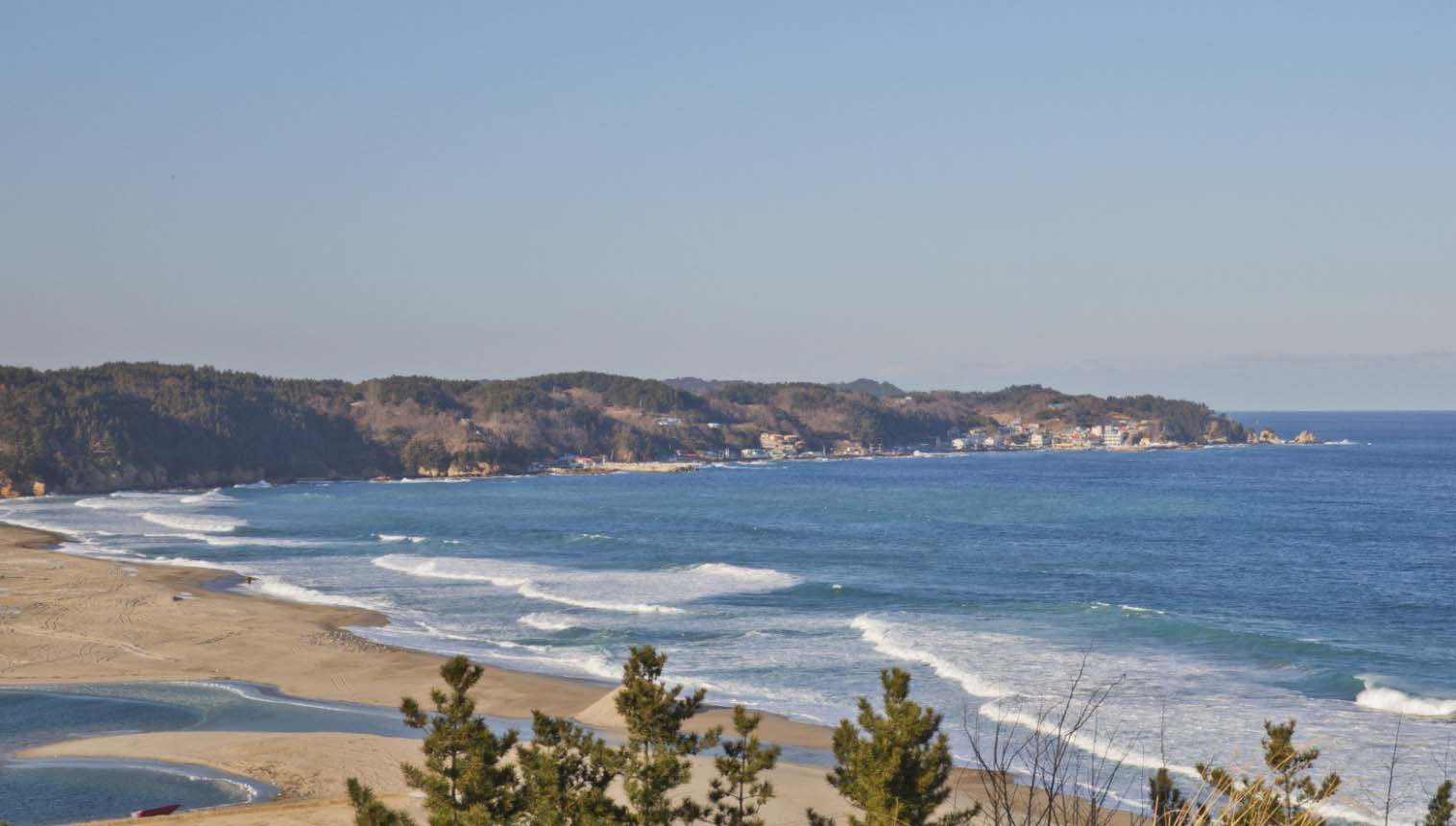 울창한 송림에 에워싸여 있으며, 모래는 굵고 몸에 붙지 않아 예로부터 여기에서 찜질하면 심장 및 순환기 계통 질환에 효험이 있다는 이야기가 전해져 내려옵니다. 긴 백사장 덕분에 동해의 명사 20리로 불리며, 얕은 수심, 깨끗한 에메랄드빛 바닷물, 울창한 송림이 만들어 주는 시원한 그늘로 가족 피서지로 적합합니다.
