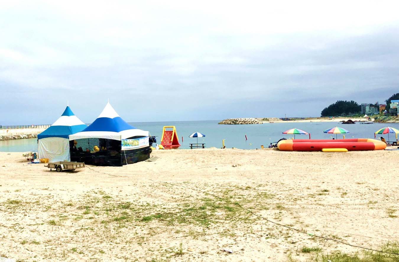 해수욕장으로서의 조건을 모두 갖추고 있습니다. 맑고 깨끗한 바닷물이 그대로 간직되어 있으며, 길고 넓은 백사장과 송림이 병풍처럼 둘러쳐져 있어 장관을 이루고 있습니다. 또한, 수심이 얕고 경사도 완만하여 어린이를 동반한 가족단위 피서지로 적당합니다. 백사장의 모래는 알이 굵고 질이 좋아 모래찜질에는 그만이며 몸에 잘 붙지 않는 것이 특징이다.