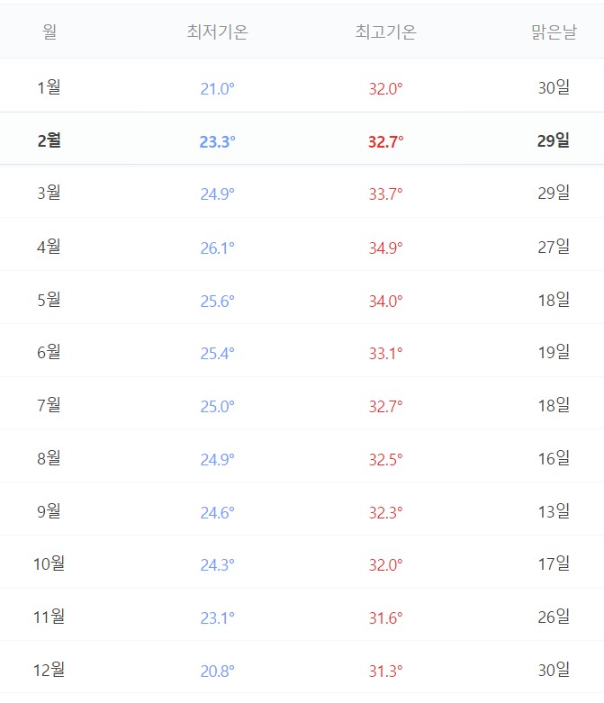 적기 : 12~3월 1, 2월은 날씨가 따뜻하고 최적의 여행 날씨입니다 |