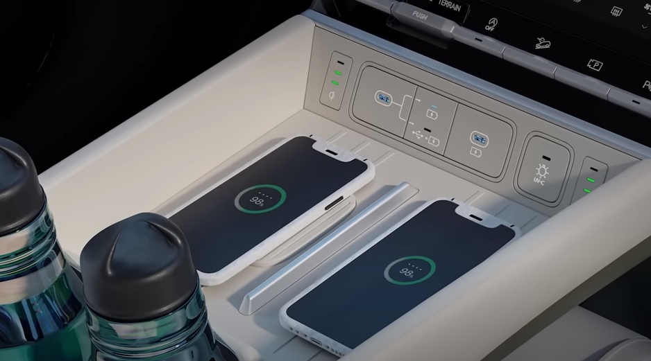 두 개의 스마트폰을 동시에 충전할 수 있도록 편의사항을 추가하였습니다. 넓고도 운전 중 손이 닿기 편한 위치에 있기 때문에 안전면에서도 많은 이점이 있는듯합니다.