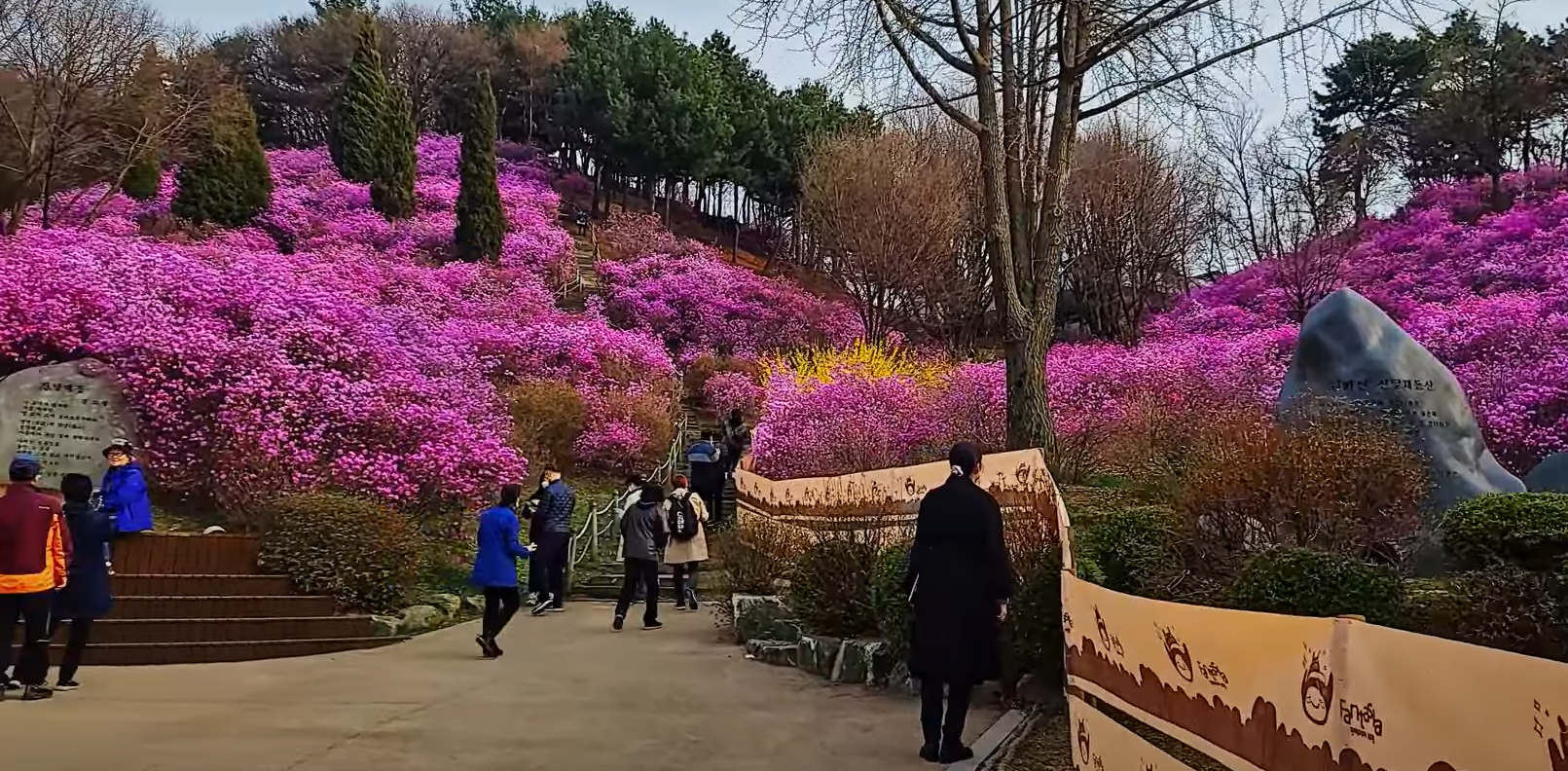진달래 동산에 들어서면 아름다운 진달래 꽃들을 볼 수 있으며 진달래와의 아름다운 사진 촬영 장소를 찾으실 수 있습니다.
