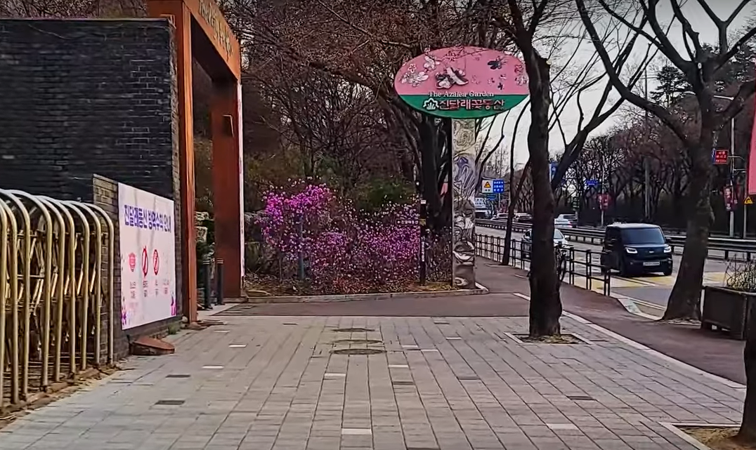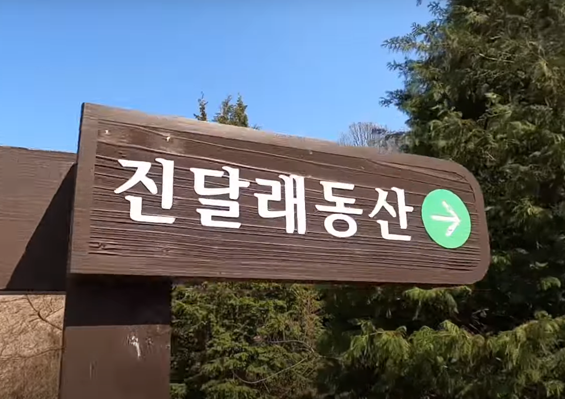 주차 후 2번 출구 앞쪽으로 쭈욱 나오시면 진달래 동산이정표와 진달래 꽃동산이라 적힌 이정표 좌측으로 출입구가 보입니다.