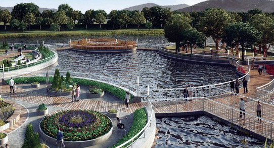 오천그린광장 저류지를 시민의 쉼과 사색의 공간, 커뮤니티 문화가 있는 정원으로 조성하여 저류지의 새로운 이용 모델 창출 잔디광장, 오천언덕, 야간경관, 터널분수, 어성길 등 조성