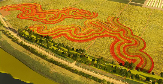도심부터 순천만 습지까지 주변 농경지를 활용한 대규모 경관정원 연출 구역별 차별화된 경관연출 향산업 등 6차 산업화 추진 조성 구역 : 8개 구역 355ha / 경관연출, 경관농업, 논아트, 화려한 초화류 식재