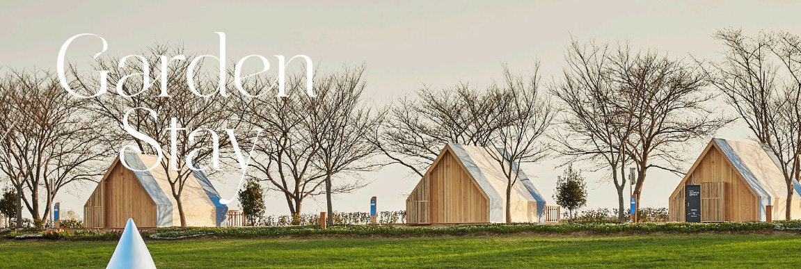 잠시 머물다 가는 정원에서 벗어나 정원에서 하룻밤을 보내는 가든스테이 운영 샤워시설을 갖춘 캐빈하우스 35동, 하루 최대 100명 (15시 입실, 다음날 11시 퇴실)