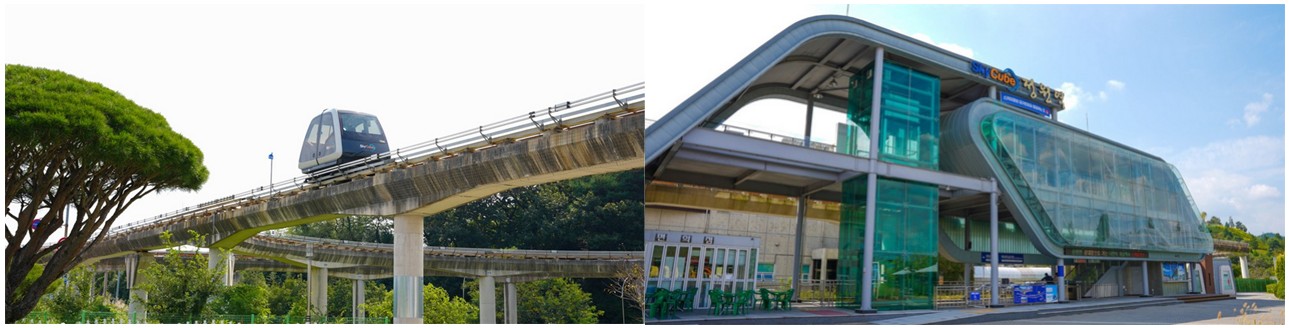 자동차 배기가스와 교통혼잡으로부터 순천만을 보호하기 위해 만들어졌습니다. 전기를 동력으로 사용하는 무인자동운전 시스템으로 동천과 정원을 따라 약 지상 3.5m에서 10m 사이 높이의 레일을 따라 운행된다 생각보다 아주 고속으로 운행됩니다.