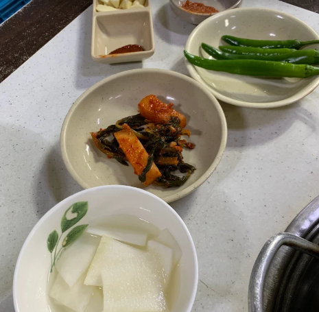 - 기본 반찬인 깍두기와 무물김치도 정갈하게 제공됩니다.