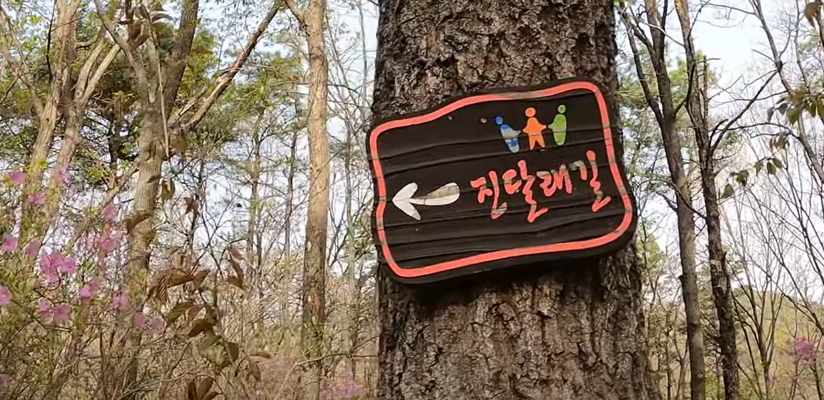 한참을 오르다 보면 진달래 군락지로 가는 길임을 알리는 이정표를 만나실 수 있습니다.