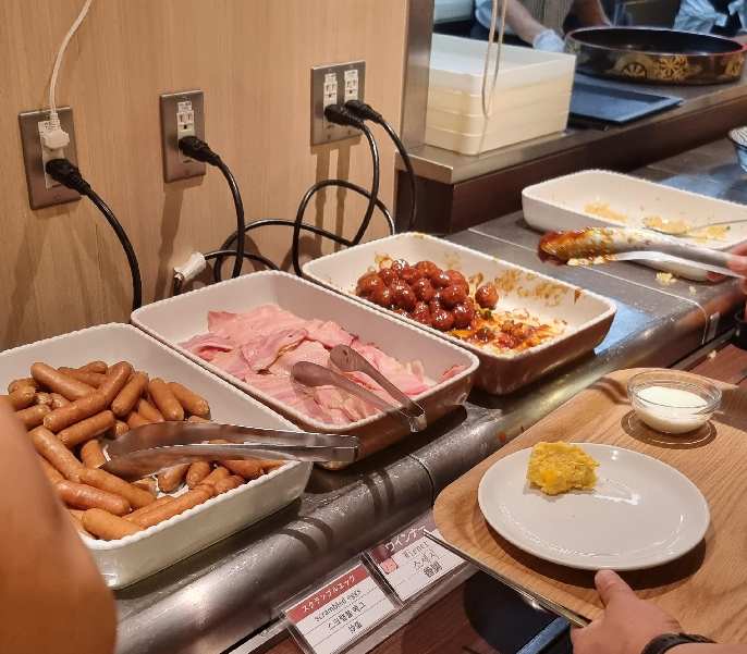 조식당은 1층에 위치해 있으며 아침 6시부터 10시까지(9시 30분 마지막 입장) 운영됩니다. 이른 시간에 직접 만든 수제 초밥이 제공됩니다. 재료 소진되면 중단하는 듯합니다. 늦게 가면 초밥이 없는 경우가 종종 있습니다. 나머지 음식들은 생각보다 종류가 많습니다. 음식은 대체 적으로 나쁘지 않고 맛도 괜찮았습니다. 아침 깔끔하게 먹을 수 있습니다.