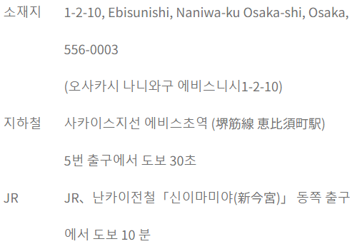 위치는 바로 인근에 지하철역이 위치해 있고 5분 거리 이내에 JR선 역이 있습니다. 도톤보리에서도 걸어서 30분 정도에 올 수 있는 위치에 있습니다. 걷기가 좀 힘드시다면 택시로는 약 1,100~1,300엔 사이로 저렴하게 이동이 가능한 위치에 있습니다.