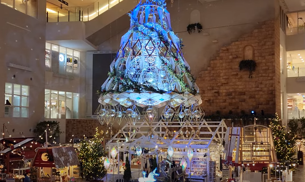 오사카 한큐 백화점에는 매년 대형 크리스마스 시장이 열립니다. 이곳의 주요 어트랙션은 실내의 거대한 크리스마스트리와 스키팅 링크입니다.