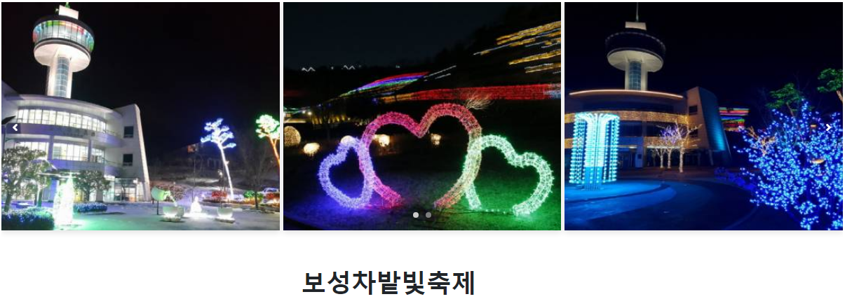 전국 겨울축제 중 대표적인 두 가지 빛 축제를 알려드리겠습니다. 겨울밤을 아름다운 빛으로 가득 채울 수 있는 환상적인 빛의 향연입니다. 아래 대표적인 보성 차밭 빛축제와 대구이월드 별빛축제 상세 일정 확인하시고 즐거운 축제 함께하시기 바랍니다.