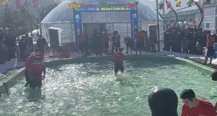 참가자들은 얼음 위에서 구멍을 뚫고 송어를 낚는 얼음낚시와 가뒤진 곳에서 맨손으로 송어를 잡는 송어맨손낚시를 체험하실 수 있습니다.