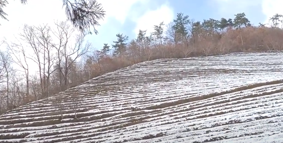 차밭 위로 내린 서리와 차가운 공기가 만들어내는