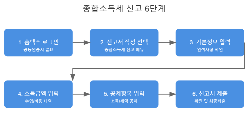 종합소득세는 개인이 1년간 벌어들인 소득에 대해 신고하고 납부하는 세금입니다. 신고 대상은 사업소득, 근로소득, 이자·배당소득, 연금소득, 기타소득 등을 합산한 소득이 있는 사람입니다. 매년 5월 1일부터 31일까지 홈택스나 세무서를 통해 신고·납부할 수 있습니다. 성실 신고를 통해 가산세를 방지하고 세액 공제나 감면 혜택을 놓치지 않도록 주의하세요.