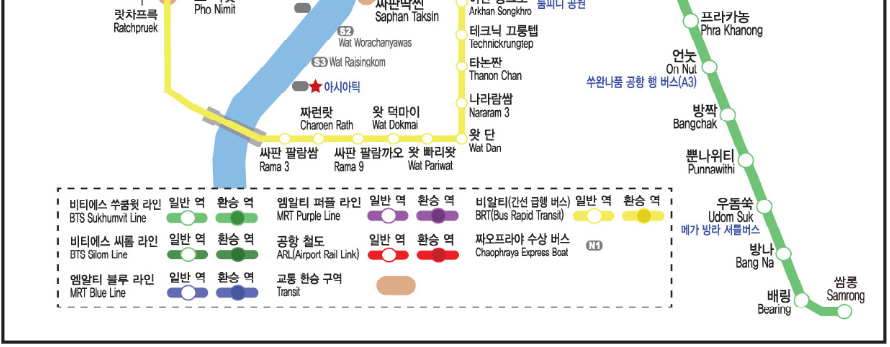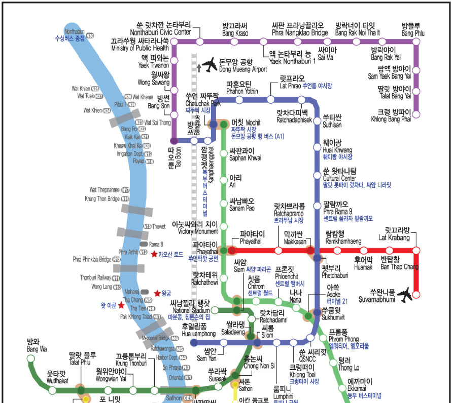 방콕 지상철 지하철 공항철도노선도