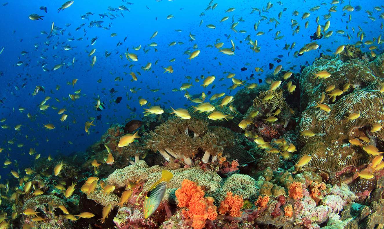 깊은 산호로 가득한 바다에는 문어와 뱀장어도 가득하답니다. 울긋불긋한 산호 사이로 수백만 마리의 물고기 떼를 만나는 행운을 기대해 보세요.