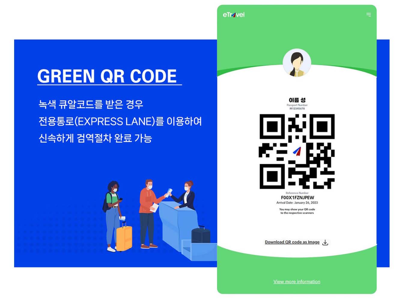 ▶이제 모두 완료되었습니다 출입국 시 확인 가능한 eTravel QR코드 카드가 아래와 같이 두 종류 중 하나로 발급됩니다.