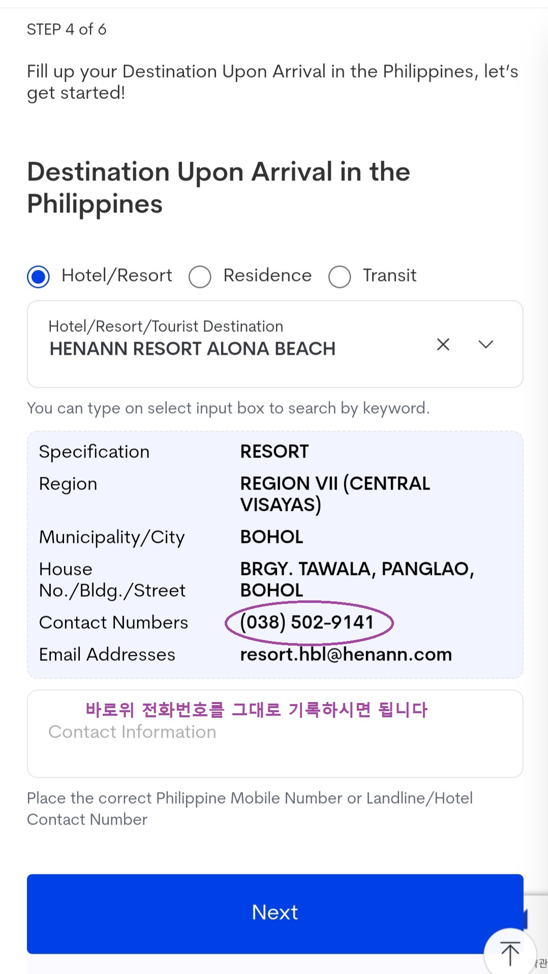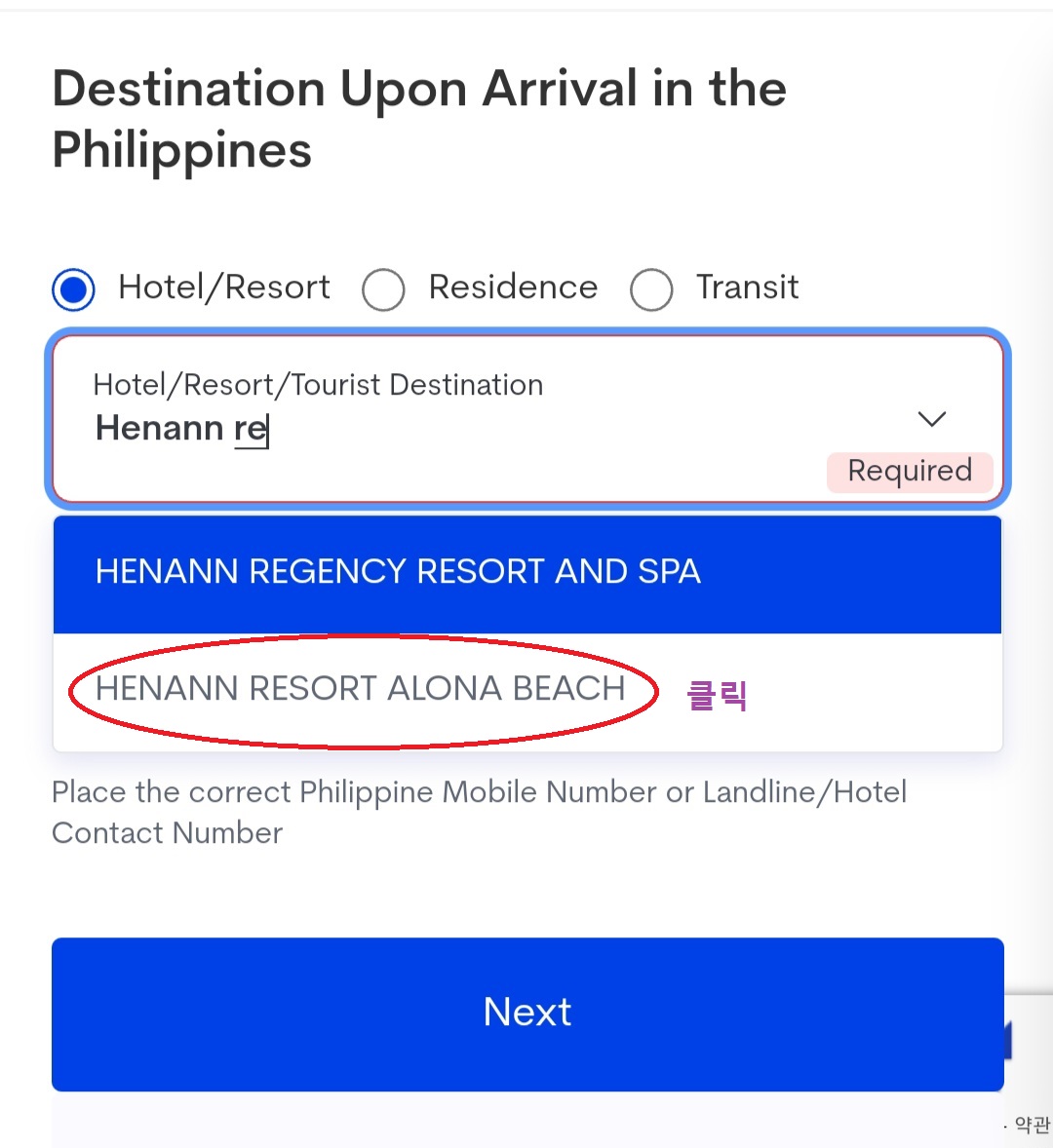 ◈여행 시 머물 숙소명과 전화번호를 기록하라고 나올 겁니다 구글에 숙소검색하시어 정확한 영문명 기록하다 보면 숙소명이 뜰 겁니다 클릭하면 나머지 주소들도 자동 기록 됩니다.