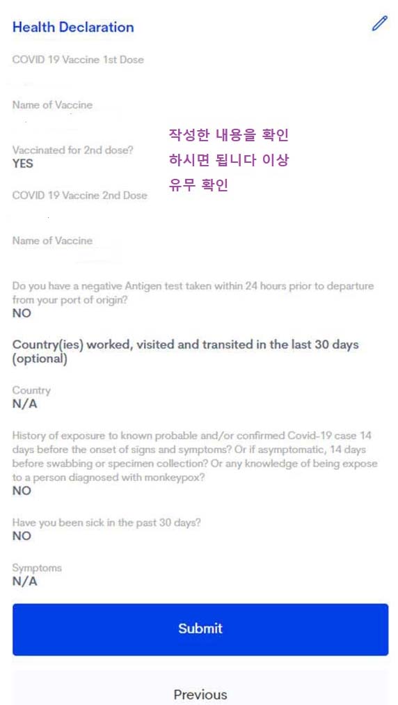 정확하게 확인하시고 이상이 없으면 Submit을 누르고 다음으로 넘어가시면 됩니다.