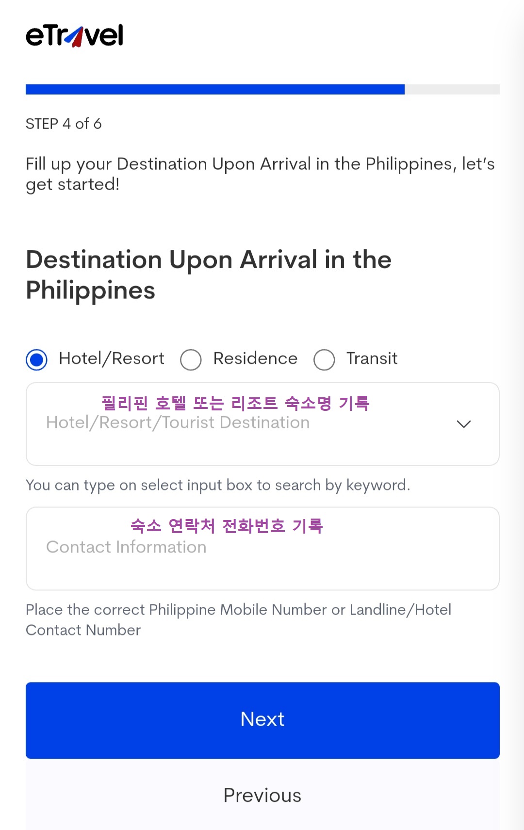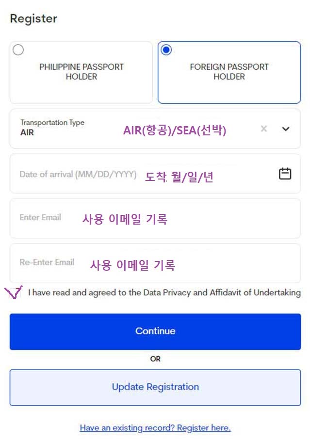 ▶필리핀 도착 전 3~4일 이내 e트래블카드를 작성해야 합니다.
