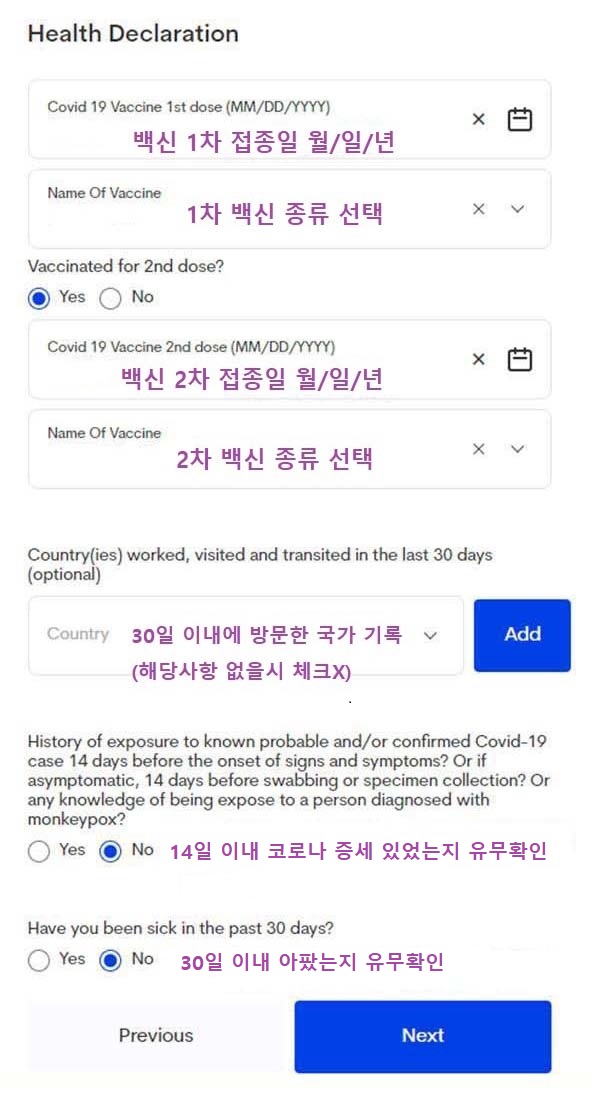 ▶다음은 코로나 접종 정보를 넣으셔야 합니다. 정부 24에서 코로나 백신접종 증명서를 발급받으신 후 그대로 보고 입력하시고 필요하면 챙겨서 가시면 됩니다. 접종증명서는 정부 24에서 간단하게 발급받으실 수 있습니다. 아래 바로가기 확인하시며 됩니다.