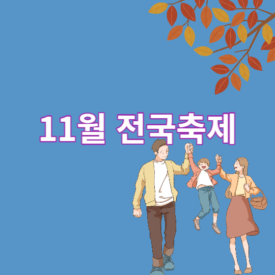 11월 전국축제 일정을 알려드리도록 하겠습니다. 가을의 끝자락과 초겨울의 입구에서 평소보다는 많지 않은 축제들이 열립니다. 다른 때보다는 많지 않지만 꼭 확인하시고 즐거운 11월 축제 함께 하시길 바랍니다.