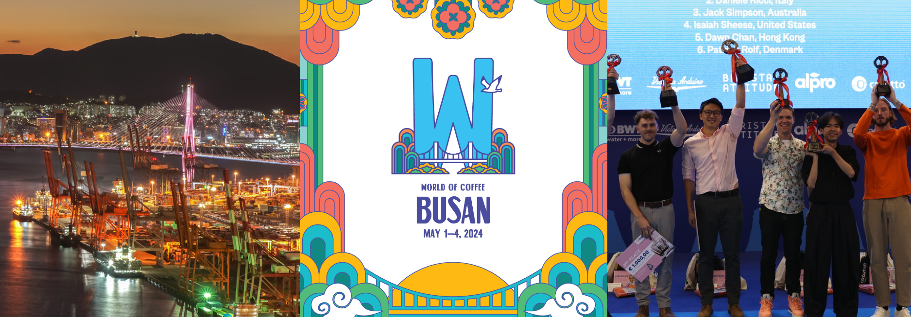 유럽 최대 커피 전시회 월드오브커피의 아시아 첫 런칭 월드오브커피 부산 그리고 세계 각지의 국가 대표 바리스타들이 경연을 펼치는 월드바리스타챔피언십이 2024년 5월 1일 - 4일 부산에서 열