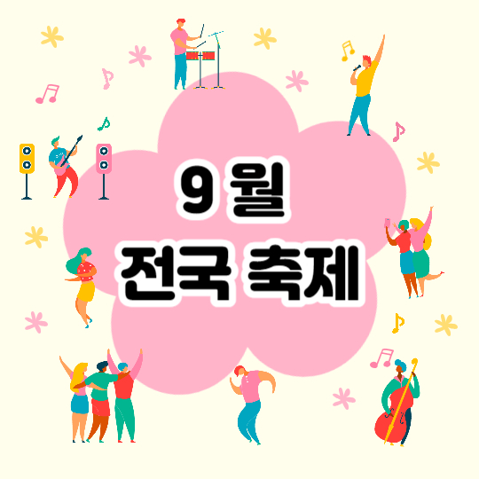 9월 서울 및 광역시에서 많은 다채로운 축제들이 열립니다. 너무나 잘 알려진 축제도 있지만 우리에게 생소하고 처음 접하는 축제들도 한 번쯤 방문하시어 새로운 경험을 만끽하시기 바랍니다